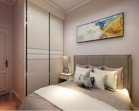 臥室地面考慮木地板,從裝修方面上相對比較簡單,其家具主要有床、床頭柜、收納衣柜等。