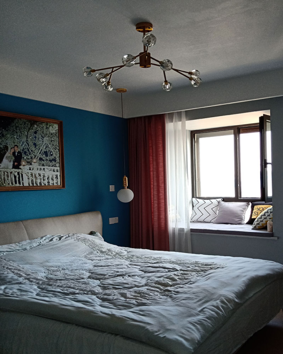 本案業主是一對年輕夫妻,喜歡簡潔大方。整體空間淺色系搭配,設計師根據業主的喜好,灰色,原木色,海蘭灰,局部白色相映襯,綠色鮮艷跳色進行渲染,畫龍點睛,活躍空間,同時為了使空間不那么冷淡,壓抑,墻面墻布色彩采用中性暖灰色,以及淺灰色為主。 在大眾的眼里,現代簡約風是不太接地氣的,現代簡約適合的人群:甚或標準較高、居住習慣較高,居住習慣十分自律。這對業主夫妻,兩個人正好就屬于這類人,生活習慣非常好,會每天早起鍛煉,定期收納。對房屋整潔有高要求,希望打掃方便,家里陳設一目了然。 故而當設計師提出現代簡約風時,一拍即合。整間房屋基本上就運用了灰、海蘭灰、原木、白、四種基調。色彩是低飽和度,燈光的加持,故整個空間顯得很舒適。